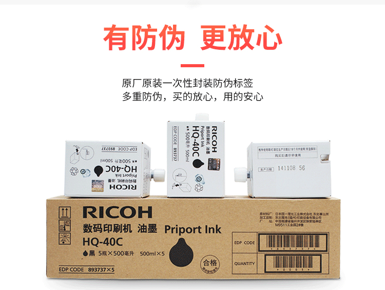理光(Ricoh) HQ-40C 黑色油墨 (适用 DD4440C4440PC4450C4450PC4450P)